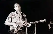 Patrice Meyer was born in Strasbourg in the Alsace region of France. He began teaching himself guitar at an early age (10), sneaking into his older brother’s room to handle his guitar.[1] Being self-taught, he didn’t know anything about proper guitar technique, or how to use a plectrum, so he developed a unique polyphonic style of fingerpicking using all five fingernails of his right hand. At 16 he joined his older brother’s band, playing mostly Progressive rock. In 1977 he turned professional, opening as a solo act for Magma and Gong when they played Strasbourg. Moving to Paris that year he met John McLaughlin, helping him with his French while John helped him with his English.[2] Meyer continued playing opening gigs for famous jazz musicians coming through Paris, including jazz guitarist Jim Hall — who in 1981 said of Meyer in a magazine interview with Martine Palmé, "He's got such an amazing right hand technique that it almost gave me stagefright." In 1983 Meyer met Australian fusion guitarist Frank Gambale at the Musicians Institute in Hollywood, sharing the stage in a widely publicized ‘guitar duel.’