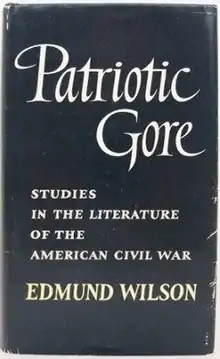Patriotic Gore: Studies in the Literature of the American Civil War is a 1962 book of historical and literary criticism written by Edmund Wilson. It consists of 16 chapters about the works and lives of almost 30 writers, including Ambrose Bierce, George Washington Cable, Mary Boykin Chesnut, Kate Chopin, John William De Forest (who, as American historian Henry Steele Commager put it,[1] "surprisingly gets more space than any other writer, North or South"), Charlotte Forten, Ulysses Grant, Francis Grierson, Nathaniel Hawthorne, Hinton Rowan Helper, Oliver Wendell Holmes Jr., Henry James, Sidney Lanier, Abraham Lincoln, John S. Mosby, Frederick Law Olmsted, Thomas Nelson Page, Harriet Beecher Stowe, Albion W. Tourgée John Townsend Trowbridge, Mark Twain, and Walt Whitman. In addition to De Forest, Wilson pays particular attention to Cable, Grant, Grierson, Holmes, and Stowe, choices considered "catholic and unexpected" at the time of its publication.[1] The "patriotic gore" of the book's title was taken from Maryland's former (until 2021) pro-Confederate state song, "Maryland, My Maryland,"[2] "wrenched rather violently"[1] from a line about the Baltimore riot of 1861. Commager described the book as a "series of reflections on [Civil War] literature and on the men and women, and the societies, that produced it"; he characterized it as "original, skeptical, allusive, penetrating. It is discursive, ranging widely from North to South, and even more widely in time."[1][3] Most of the essays in the book originally appeared during the 1950s in The New Yorker.[4]