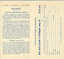 - ↑ State Camp of Pennsylvania and Subordinate Camp Constitution Preceded by the National Camp Constitution and General Laws of the Patriotic Order of Sons of America (Philadelphia: P.O.S.A, 1945, pp. 5-7.