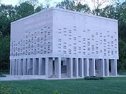 Despite its unique design incorporating an etched relief of an American flag on its north wall, the memorial lacked an actual American flag flying in silent tribute to those enshrined therein. On Memorial Day, May 29, 2006, during the annual memorial service, an American flag was solemnly raised in an enduring tribute to those honored by the memorial.