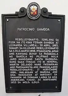 Patrocinio Gamboa y Villareal (30 April 1865 – 24 November 1953) was a Filipino revolutionary notable for her participation in the Philippine Revolution. Gamboa is best known for making the Philippine flag hoisted during the inauguration of the revolutionary government of the Visayas in Santa Barbara, Iloilo.[2]