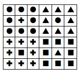 One player, the Designer, designs a pattern and then places a symbol within each cell of a 6x6 grid using an agreed upon set of symbols (e.g., plus, circle, triangle, square, star). The Designer’s pattern can be based upon visual symmetries, mathematical algorithms, or other method (see example pattern). The Designer's pattern is not shown to the other players, but must be discovered by them through the game play.