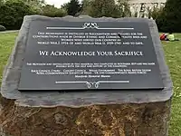 She campaigned valiantly for 26 years to have a monument erected and together in 2019, Patti Flynn, Uzo Iwobi and Race Council Cymru worked with Deputy Minister and Chief Whip Jane Hutt MS, Cllr Susan Elsmore, Cardiff Council, Royal Commonwealth Society Wales, British Legion and British Armed Forces represented by Colonel Jonah MacGill and the stone masons organised to have the monument installed. Patti Flynn wrote the words on the face of the monument and in so doing ensured that her legacy and the selfless sacrifice of Black, Asian and Minority Ethnic service men and women in Wales will never be extinguished". - Black History Wales[7]