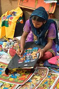 The traditional occupation of the Patua is scroll painting, image making and other decorative work. They paint pictures on coarse pieces of cloth, depicting images of Hindu gods and goddesses. These paintings are referred to as Patas (পট). Like other Muslim artisan groups in India, they have seen a decline in their traditional occupation. The majority are now employed as daily wage labourers.[1]