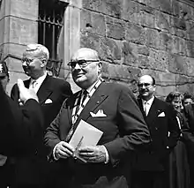 Spaak photographed receiving the Charlemagne Prize in 1957