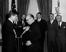 Spaak receives the Medal of Freedom (1945) from President John F. Kennedy in 1961