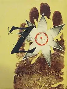 As part of the San Francisco Bay area Beat revolution, Beattie explored other art forms in addition to drawing and painting.[12] Working in San Francisco, Sausalito, Larkspur, and Berkeley, he socialized and collaborated in various mediums with George Herms,[13] Arthur Richer, Wallace Berman,[14] Larry and Patti Jordan,[15] Bill Spencer,[16] Warner Jepson,[17] ruth weiss,[18] and Jay DeFeo.[19][20][21]