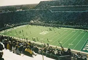 Michigan State warming up before the Michigan Wolverines vs. Michigan State Spartans football game at Spartan Stadium in 2001.