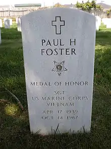 Paul Hellstrom Foster (April 17, 1939 – October 14, 1967) was a United States Marine who posthumously received the Medal of Honor for heroism in Vietnam in October 1967.