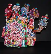 Early in his artistic career, Johnson was inspired to consider a book as more than something to read after seeing the sculptural book bindings of Phillip Smith, MBE.[7] Johnson's own style embraces a profusion of bright-colored fabric dyes onto watercolor paper, many times on both the front and back of the paper. Johnson's book art creations are unique in that he does not use glue in his books. He constructs the pop-up mechanisms using dovetail, joints and paper hinges.[8] A single book structure could include up to 200 individual pieces.[9]
