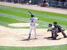 Konerko retired on September 28, 2014 after spending 18 years in the Major League Baseball, the last 16 of which were with the White Sox.[55] All but 81 of Konerko's 2,349 career MLB games were played with the White Sox. Konerko was the last member of the 2005 champion White Sox left on the team at the time of his retirement. It was announced on Paul Konerko Day that his number (#14) would be retired and the statue of Konerko was revealed in the left field concourse, becoming the ninth player to be honored with a statue by the White Sox.[52] On October 24, 2014, Konerko was named the co-winner of the Roberto Clemente Award, sharing the honor with Jimmy Rollins of the Philadelphia Phillies. By winning the award, Konerko became the first member of the White Sox to do so.[56] On May 23, 2015, prior to a game against the Minnesota Twins at U.S. Cellular Field, Konerko became the tenth White Sox player to have his number retired.[57]
