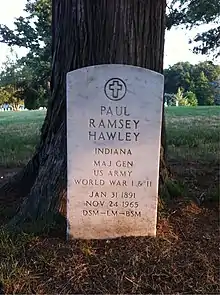 Hawley died at the Walter Reed Army Medical Center on November 24, 1965, following a several years long fight with cancer.[33] His burial with military honors took place at Arlington National Cemetery on November 29, 1965.[34]