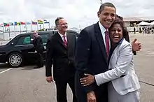 Trinidad and Tobago foreign minister Paula Gopee-Scoon bidding farewell to President Barack Obama following the 5th Summit of the Americas on April 19, 2009.