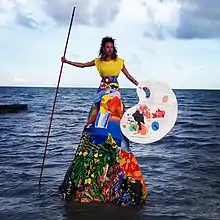 Paula Wilson (born December 17, 1975) is an African American "mixed media" artist creating works examining women's identities through a lens of cultural history. She uses sculpture, collage, painting, installation, and printmaking methods such as silkscreen, lithography, and woodblock.[1] In 2007 Wilson moved from Brooklyn, New York, to Carrizozo, New Mexico (population 996), where she currently lives and works with her woodworking partner Mike Lagg.[2]