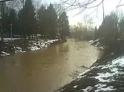 The villages located on the river include Rudovci, Mali Crljeni, Burovo, Zeoke and Baroševac. Despite not being a major river, and with all the amelioration works in its basin, Peštan remained a seasonally flooding river, especially in spring, damaging agricultural fields and settlements in its watershed.[2]