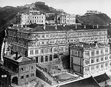 About 13 years earlier, in 1875, N.J. Ede had built a house named Dunheved on the property.[2] In 1881, Alexander Findlay Smith, a Scottish former railway man, had petitioned for the right to introduce a funicular railway to Hong Kong. The Peak Tram was built and began operations in 1888. About the same time, Findlay Smith bought Dunheved from Ede, and reopened it as the Peak Hotel; Ede and his family moved next door.