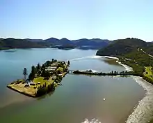The first twenty patients were admitted to the newly instated hospital in March 1911.[11] Initially it was a male only institution. The number of patients grew and the facility was further developed, paths and gardens were constructed with manual labour, and new buildings were added. Patients and staff spent ten years building the rubble causeway and bridge to the mainland, which was completed in 1957.[12] Over the decades, the hospital outgrew the island and expanded onto the adjacent mainland, where a chapel and other facilities were constructed, mainly in the 1950s and 1960s.