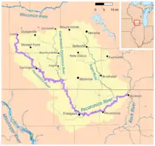 The Pecatonica River is a tributary of the Rock River, 194 miles (312 km) long,[2] in southern Wisconsin and northern Illinois in the United States.