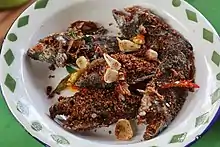 ![]() Iwak pakasam basanga a dish of fried pekasam fish, a Banjar dish of South Kalimantan, Indonesia | |