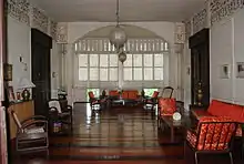 The house is inspired by a Beaux Art architectural design due to its very well defined decorative articulation in its pilasters. The graceful proportion and tasteful details contribute to the quality aesthetics of the house. The second floor has the traditional sliding capiz windows with balustraded ventanillas. Above the windows is a series of transoms with traceries. The design is basically square in plan, broken only by the central portion of the facade on the second floor which juts out over the main entry.[3]