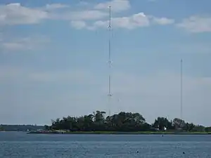 • High Island - an 8-acre island was purchased in 1762 by Captain John Wooley, which he then named "High Island" for its elevated center. A radio broadcasting company bought the island in 1962 and built an automobile bridge to City Island. WCBS and WFAN currently operate the 529-foot antenna tower on the island.[4]