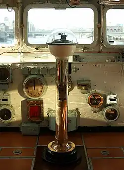 In marine navigation, a pelorus is a reference tool for maintaining bearing of a vessel at sea. It is a "simplified compass" without a directive element, suitably mounted and provided with vanes to permit observation of relative bearings.[1]
