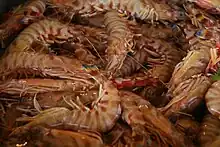 Around 500 tonnes (490 long tons; 550 short tons) of brown tiger prawns are caught each year.[8] Fisheries in Torres Strait are worth around A$24 million per year.[10] It is closely related to Penaeus monodon, with which it can hybridise.[11] It has the potential to be used in aquaculture (shrimp farming) since, although it grows less rapidly than P. monodon, it commands higher prices.[12]