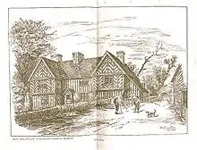 Penarth is a two storey hall house with two forward projecting gabled wings.[2] The two bayed construction of the hall with a central cruck truss is likely to be the earliest part of the house and could be 15th century. It was originally suggested that it was an aisled hall, but restoration work in 1964 showed this was not the case.[3] A chimney stack is positioned so that a Lobby entrance is formed, a typical feature of Severn Valley houses. The two gabled wings on either side of the hall are jettied with the second floor projecting forward and the timber framing forming a decorated geometric pattern. .