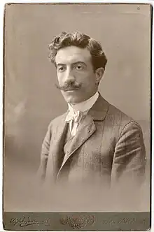 Pencho Koychev was born in Dryanovo to the professional builder[1] Gencho Radev Koychev and Tsana Docheva. The family moved to Silistra in 1879.[2] He attended middle school in Silistra and high school in Ruse.[3] Koychev studied civil engineering and architecture at Ghent University in Belgium under Louis Cloquet and graduated in 1901 with honours.[1][4]