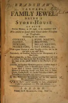 - 1 2 Confectioner.), Penelope BRADSHAW (and LAMBART ( ) (1748). Bradshaw's Valuable Family Jewel ... Containing all that relates to cookery, pastry, pickling, preserving, wine making, brewing, bread making, oat cakes, &c. ... The 10th edition. London.