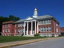 Due to this rapidly increasing population and school consolidation, a further expansion of the high school building on Five Mile Line Drive was approved in 1949.[30] Five and one half acres of land was acquired in the rear of the existing building.[31] The expansion added a gymnasium, expanded facilities, and a new 14 room elementary school in the rear of the building. The cost of the expansion was $565,000 (USD).[32] The expanded school building was designed for 800 students.[33] The old gymnasium was turned into an auditorium and the new addition included a double gymnasium.[34]