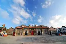 This temple was founded in 1696 during the Qing dynasty, the founder is Xue Kui (薛奎), a military officer of Penghu Navy (澎湖水師協).[1] It is located at the noted touristic attraction, close to the beach area. Since 2003, Guan-Yin-Ting would gather thousands of visitors from everywhere for attending the Firework Festival from April to June.[2]
