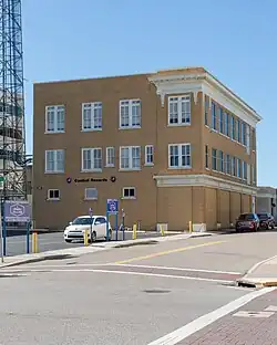 The Peninsular Telephone Company Building, also known as the Peninsula Telephone Company Building or the GTE Building is an historic three-story yellow brick building located at 1009 4th Avenue, West in Bradenton, Florida. Built in 1925 for Peninsular, an independent telephone operating company based in Tampa which later became part of General Telephone (GTE), it was designed by local architect J. H. Johnson in the Commercial or Chicago School of architecture. Although not as ornate as most buildings of this style, it does have some ornamental features on its ground floor as well as a cornice topping its third floor. After the phone company stopped having a local walk in customer service center, the street level windows were bricked in. Today the building is owned by Manatee County and is used for storage. It is included in a walking tour of downtown Bradenton and is included in the city's master list of historic buildings.[1][2][3][4][5]