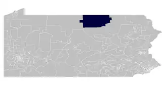 The 68th District encompasses parts of Bradford County and all of Tioga County, and includes the following areas:[1]