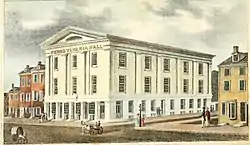 Pennsylvania Hall, "one of the most commodious and splendid buildings in the city,"[2] was an abolitionist venue in Philadelphia, built in 1837–38. It was a "Temple of Free Discussion", where antislavery, women's rights, and other reform lecturers could be heard.[3] Four days after it opened it was destroyed by arson, the work of an anti-abolitionist mob.