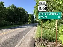Pennsylvania Route 158 (PA 158) is an 11.9-mile-long (19.2 km) state highway located in western Pennsylvania, running from PA 18 south of New Wilmington in Lawrence County, to US 62 and PA 258 in Mercer in Mercer County.