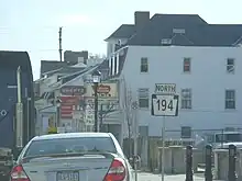The portion of current PA 194 southwest of Hanover dates back to the 18th century as a section of the Monocacy Road connecting Hanover to Frederick, Maryland.[5] The section of the road between Littlestown and Hanover was a private turnpike called the Hanover and Littlestown Turnpike while the portion between Hanover and East Berlin was the Hanover and East Berlin Turnpike, both dating to the 19th century.[6] When Pennsylvania first legislated routes in 1911, present-day PA 194 was designated as part of Legislative Route 230 between Littlestown and Hanover and as part of Legislative Route 190 between Hanover and Abbottstown.[7] PA 194 was designated in 1928 to run from US 140 (now PA 97) in Littlestown north to PA 74 south of Dillsburg, following its current alignment between the two points. At this time, the entire length of the route was paved. The road between the Maryland border and Littlestown was an unnumbered, paved road.[8] By 1930, PA 194 was extended southwest from Littlestown to the Maryland border.[9] In the 1940s, the route was widened between the border of York and Adams counties and the northern border of Hanover.[10] By 1965, PA 116 and PA 194 were split into a one-way pair through downtown Hanover.[11] In May 2002, a roundabout was proposed at the intersection with US 30 in Abbottstown in order to improve safety and reduce congestion along PA 194 for traffic having to stop at the intersection.[12] The intersection at US 30 in the center of Abbottstown was converted to a roundabout in December 2002.[13]