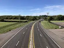 The southernmost part of PA 213 was built as part of the Bridgetown and Feasterville Turnpike, a turnpike that connected Feasterville with Bridgetown.[4] This turnpike company was chartered in 1844.[5] The portion of the route from west of Langhorne to the northern terminus became a part Legislative Route 281 when Pennsylvania first legislated its state highways in 1911.[6] In 1913, this portion of road became part of the Lincoln Highway, an auto trail that ran from San Francisco east to New York City.[7] The Lincoln Highway was rerouted to bypass Langhorne to the southeast in 1923.[8] PA 213 was designated in 1928 to follow its current alignment between PA 532 in Feasterville and US 1 (now US 1 Bus.) in Oxford Valley.[9] PA 213 has remained on the same alignment since.[3] On July 21, 2014, the PA 213 bridge over the Neshaminy Creek, which was structurally deficient, closed for a project that replaced it with a new bridge that opened on November 25, 2015.[10][11] A roundabout opened at the junction of PA 213 and Bridgetown Pike on June 19, 2015, eliminating a sharp intersection. The total cost of the bridge replacement and the roundabout was $7.3 million.[12]