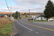 The route leaves Shenandoah for West Mahanoy Township and becomes Ringtown Boulevard, curving north and east to ascend a forested hill as a three-lane road with two northbound lanes and one southbound lane. PA 924 becomes two lanes again and bends to the north, passing to the east of the community of Shenandoah Heights. The road heads into dense forests and turns northeast off Ringtown Boulevard onto an unnamed road, crossing into Union Township and passing to the east of Fetter Pond. The route continues into East Union Township and comes to an intersection with PA 339. At this point, the two routes head north for a concurrency on Main Boulevard and pass through residential areas in the community of Brandonville. PA 339 splits from PA 924 by turning west, with PA 924 continuing along Main Boulevard, curving northeast and running through farmland with some woods and homes. The road crosses the Catawissa Creek and winds northeast through forested areas with some fields, heading east. The route turns north and passes residences in the community of Sheppton as Center Street. PA 924 becomes unnamed and runs through forests with some homes and passes to the east of the community of Oneida, where it curves to the east-northeast through more woodland.[2][3]