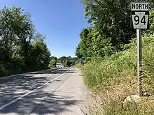 The section of present-day PA 94 south of Hanover was built in 1736 and 1737 as a wagon road connecting the Conewago Settlement (present-day Hanover) with Baltimore. This road became the Hanover branch of the Baltimore and Reisterstown Turnpike in 1805, a private turnpike that ran between Baltimore and Hanover via Reisterstown, Maryland.[6] This branch later became known as the Baltimore and Hanover Turnpike, with toll collection stopped by 1899.[6] The section of current PA 94 north of Hanover was chartered as the Hanover and Carlisle Turnpike in 1812, connecting Hanover with Carlisle.[7] These two turnpikes provided an improved trade link between the Cumberland Valley and Baltimore.[8] When routes were legislated in Pennsylvania in 1911, what is now PA 94 was designated as part of Legislative Route 190 between the Maryland border and Hanover.[9] PA 94 was designated in 1928 to run from MD 30 at the Maryland border southeast of Hanover north-northwest to PA 34 in Mount Holly Springs, following its current alignment. Upon designation, the entire length of the route was paved.[10][11] The portion of PA 94 in central Hanover was widened in the 1940s.[12] In the 1950s, the widened sections of the route were extended further north and south in the Hanover area.[13] In 1998, an act of the Pennsylvania General Assembly designated the entire length of PA 94 as the 94th Infantry Division Memorial Highway in honor of the 94th Infantry Division.[14] In 2020, a roundabout was constructed at the intersection with PA 394 in Hampton.[15]