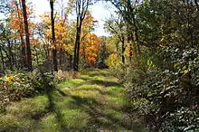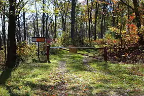 ![]() Entrance to Pennsylvania State Game Lands Number 55 on a grassy trail | |