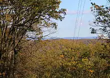 Hickory and oak forests occur on the ridges in Pennsylvania State Game Lands Number 55.[7] Mountain laurel and various deciduous plants also inhabit the area.[8] Some of the trees there have shelterwood cuttings and the game lands have been selectively timbered.[7][8] Thick hemlock forests occur in bottom lands near Pennsylvania State Game Lands Number 55.[11] The game lands are part of a forested ridgeline that runs as far as the Pocono Mountains.[5]