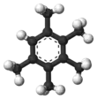 Pentamethylbenzene is an organic compound with the formula C6H(CH3)5. It is a colourless solid with a sweet odor. The compound is classified as an aromatic hydrocarbon. It is a relatively easily oxidized benzene derivative, with E1/2 of 1.95 V vs NHE.[1]