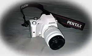 The Pentax K-S1 is a midrange DSLR camera announced by Ricoh on August 27, 2014.[1] It has a 20 megapixel sensor — new to the Pentax line-up — and an anti-aliasing filter simulator as previously seen in the Pentax K-3. Also adopted from the K-3 is compatibility with the Pentax FluCard, which allows wireless tethered shooting and wireless download of images from the camera.