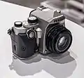 The Pentax KP is a 24 megapixel compact APS-C AA-filterless digital SLR camera announced by Ricoh on January 25, 2017. It features a PRIME IV image processor with an "image accelerator unit" that supports its operation up to ISO 819,200. It has a 1/6000s conventional and 1/24,000s electronic shutter (available in Live View). In terms of bracketing modes, it adds depth of field and shutter speed bracketing. The Pentax KP uses the Pentax K-mount interchangeable lens system.