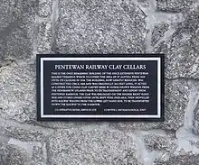 The Pentewan Railway (Cornish: Hyns-horn Bentewyn) was a 2 ft 6 in (762 mm) narrow gauge railway in Cornwall, England. It was built as a horse-drawn tramway carrying china clay from St Austell to a new harbour at Pentewan, and was opened in 1829. In 1874 the line was strengthened for locomotive working. It finally succumbed to more efficient operation at other ports and closed in 1918.