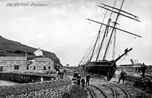 Coastal steamer Foy of Toyne, Carter and Company Fowey, unloading coal at Pentewan into Pentewan Railway