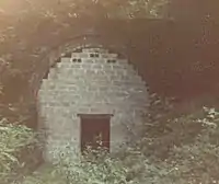 The line ran downstream from the station towards Henllan, passing under the minor road supported on the Alltycefan Bridge before curving to the right alongside the steep hillside above the river and then passing into the 167 yard long Alltycefan tunnel.[2]