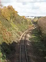 The West Cornwall Railway opened the Penwithers railway viaduct on 17 December 1887. Constructed of granite from the quarries at Carn Brea. It consists of seven arches with a total length of 420 feet (130 m). With a uniform width of 24 feet (7.3 m), it was designed for a possible upgrade to two lines, if needed in the future.[2]