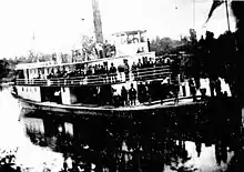 The Oregon Steam Navigation Company also picked up People's Transportation's boats Iris and Kiyus, in exchange for three OSN boats on the Willamette River, Onward, Rival, and Surprise.[4] With the settlement reached, passenger and freight rates on the Columbia, under complete O.S.N. domination, soon more than tripled.[10] It took three years for the P.T. Company to be able to declare, in 1865, a dividend on their stock.[9]